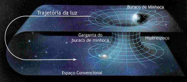 Túnel do tempo Outra maneira de viajar no tempo seria através de buracos de minhoca. Um buraco de minhoca é uma distorção no espaço-tempo permitida pela Relatividade. Seria possível passar por alguns tipos de buraco de minhoca, chamados de pontes Einstein-Rosen.